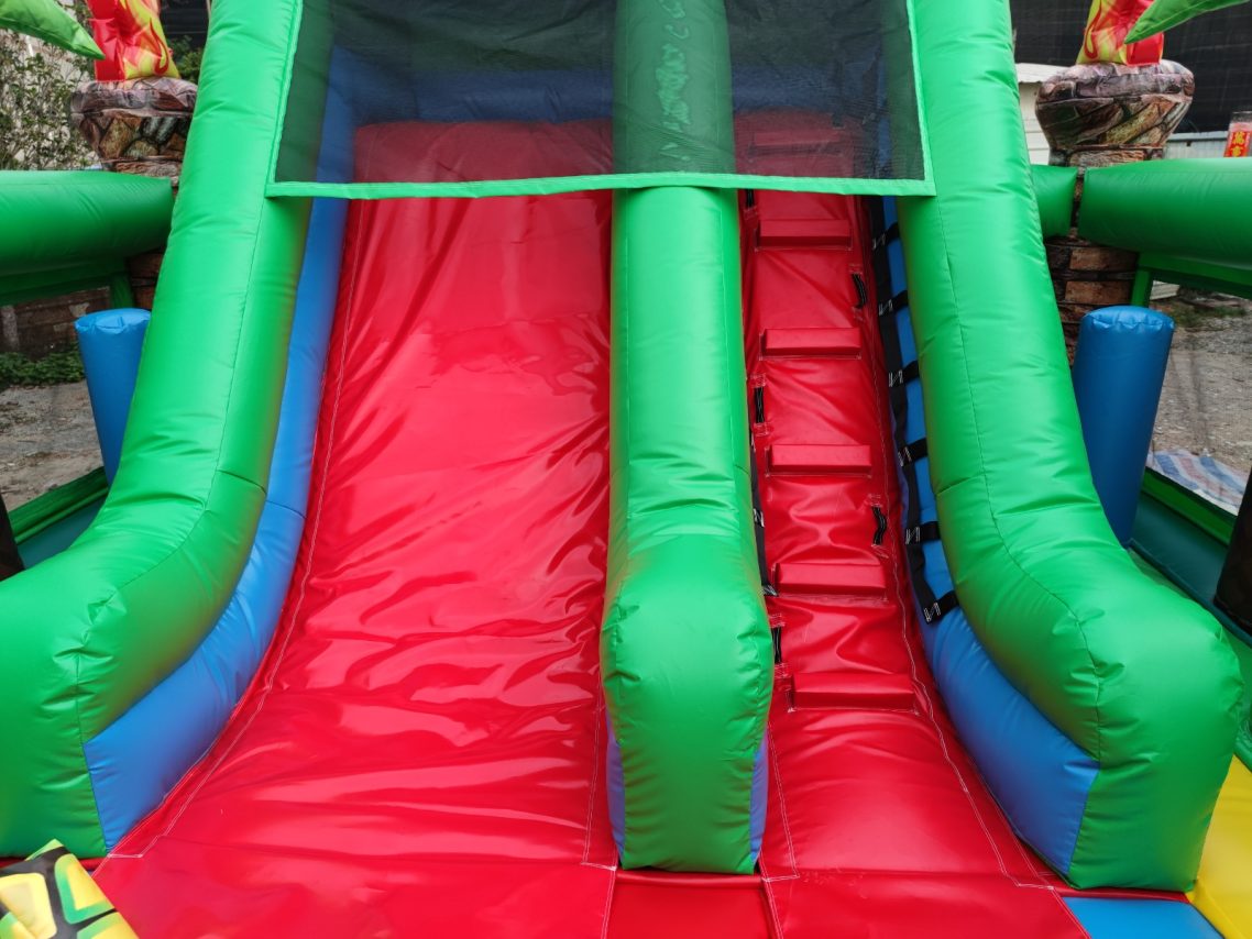 Unsere Dschungel-Hüpfburg bringt echtes Abenteuer auf jedes Fest! Mit ihrem Bunten Design und viel Platz zum Springen, Toben und Spielen ist sie das absolute Highlight für Kindergeburtstage, Einschulungen, Familienfeiern und Gartenpartys. Einfach aufbauen, aufblasen und los geht der Spaß - strahlende Kinderaugen garantiert!
