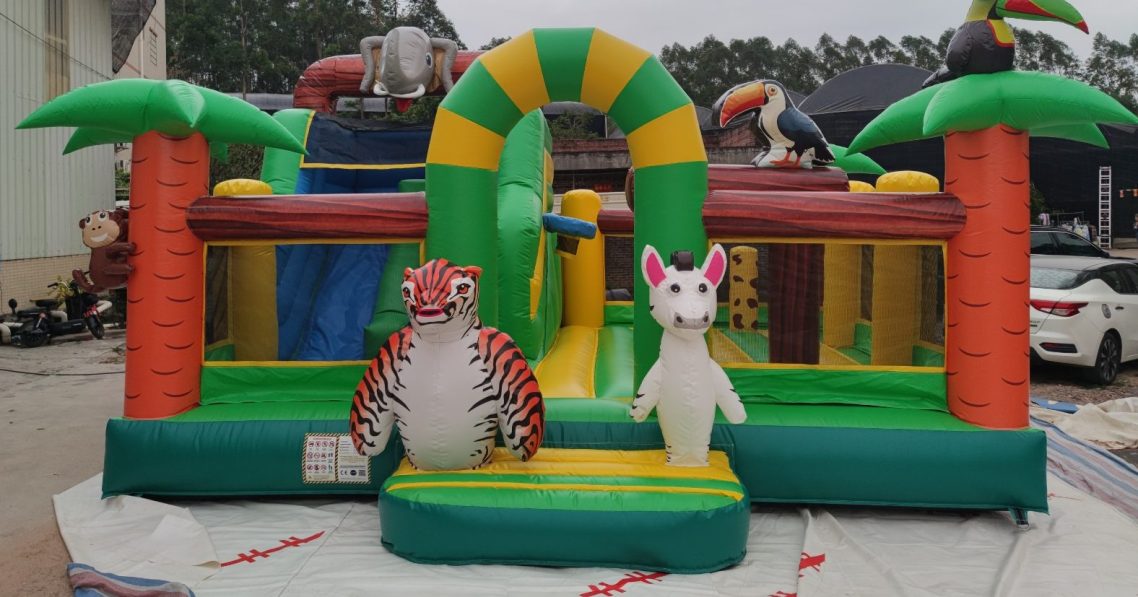 Unsere Dschungel-Hüpfburg bringt echtes Abenteuer auf jedes Fest! Mit ihrem Bunten Design und viel Platz zum Springen, Toben und Spielen ist sie das absolute Highlight für Kindergeburtstage, Einschulungen, Familienfeiern und Gartenpartys. Einfach aufbauen, aufblasen und los geht der Spaß - strahlende Kinderaugen garantiert!