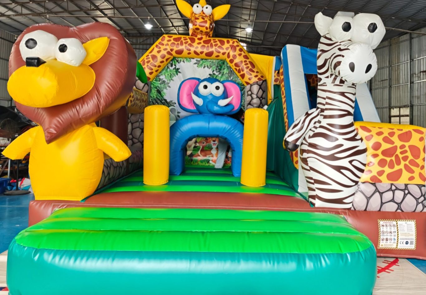 Unsere Safari Hüpfburg mit Rutsche sorgt für riesigen Spaß bei jedem Event! Mit Löwe, Zebra, Giraffe & Dschungel-Optik ist sie ein echter Hingucker und perfekt für Kindergeburtstage, Feste und Veranstaltungen. Hüpfen, spielen und rutschen – alles in einer Burg!